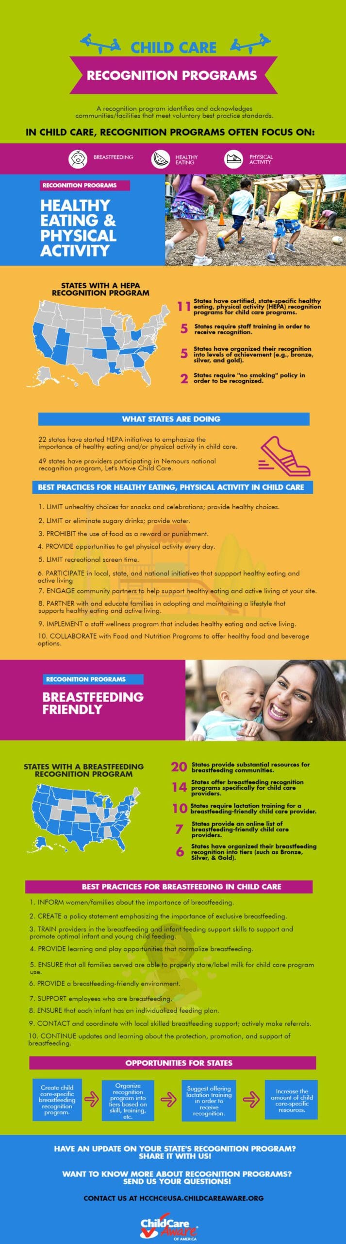 Description: A recognition program identifies and acknowledges communities/facilities that meet voluntary best practice standards. In child care, recognition programs often focus on: breastfeeding, healthy eating, and physical activity.